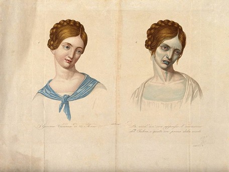 فۆتۆگرافەکە هیی هێنری پییچ ڕۆبینسنە. کەچی لە بەرانبەردا نەخۆشییە کوشندەکانی دیکە هێندە بە ئێستاتیکایی و جوانییەوە لێیان نەدەڕوانرا. بۆ نموونە، ئەم وێنەیەی خوارەوە لە ساڵی ١٨٣١ـدا کێشراوە و هیی خانمێکی گەنجی ڤیێناییە کە بە کۆلێرا دەناڵێنێت. دیمەنی لای چەپ خانمە گەنجەکەیە پێش تووشبوون بە کۆلێرا و ئەوەی تەنیشتیشی چووار کاتژمێر پێش مردنیەتی بە نەخۆشییەکە: